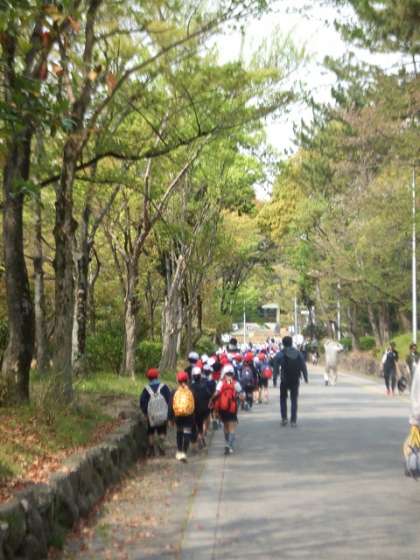 4月19日(金)、4年生が校外学習で服部緑地公園に行ってきました。