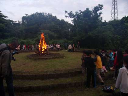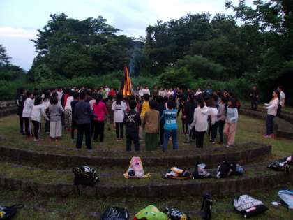 上 キャンプファイヤーが始まりました。