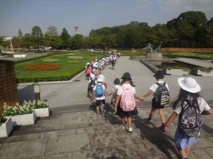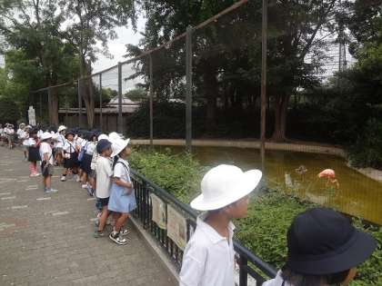 10月3日、1年生は秋の校外学習で天王寺動物園へ行ってきました。子どもたちは動物が大好き。たくさんの動物を一生懸命見ていました。鳴き声のまねもしていました。特に「かめ」が気に入ったようで「かわいい」と言っていました。