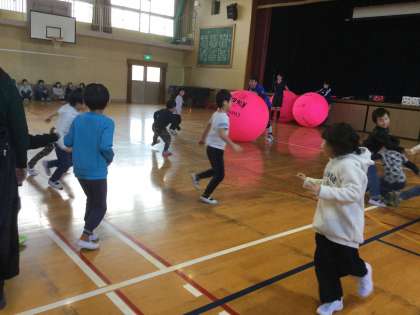 キンボールの日本の代表選手が講師に来てくださり、大人も子どもも大いに楽しめました。