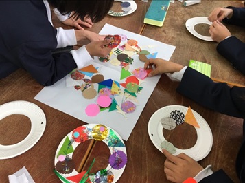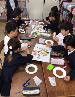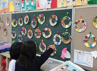 子どもたち一人ひとりの個性がキラリと光る、素敵なリースができ上がりました。来週、持って帰るのが待ち遠しいようです!