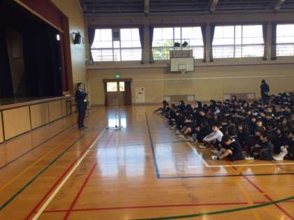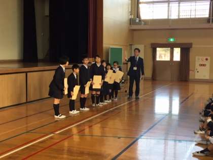 学校に届いた表彰状等を子どもたちに渡した後、2学期にがんばったことや冬休みのくらし等についての話をしました。その後は教室に入り、学級活動を行いました。