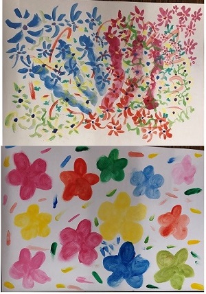 そして、みなさんも、くばった画用紙に思いっきり描いてみましょう。みんなの作品は、またホームページにのせますね。