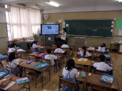 (写真は、上が1年:算数、中が2年:国語、下が3年:国語の授業の様子です。)