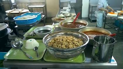 いつもおいしい給食。調理しているのは(株)日本国民食の皆さんです。