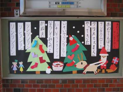 11月27日、朝の児童集会で「掲示委員会」の発表がありました。毎月、季節を感じさせてくれる玄関掲示は、委員会の子どもたちが作ってくれています。その掲示に関するクイズをみんなで考えました。12月もすてきな掲示ができました。