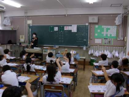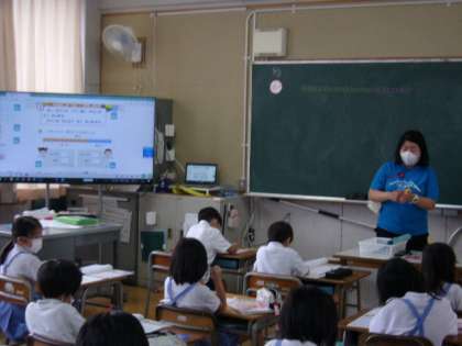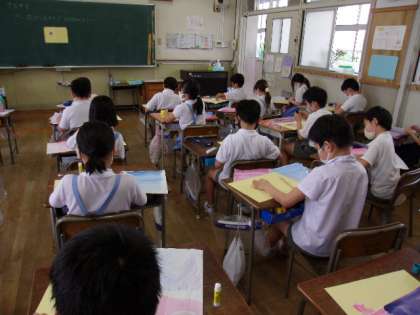写真下 3年図工:アジサイ〜花びらをちぎってはり合わせよう〜