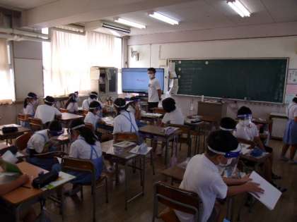 (話し合い活動時はフェイスシールドを着けています。)
