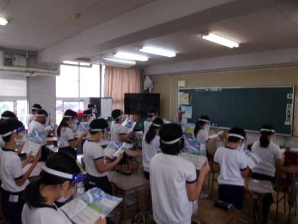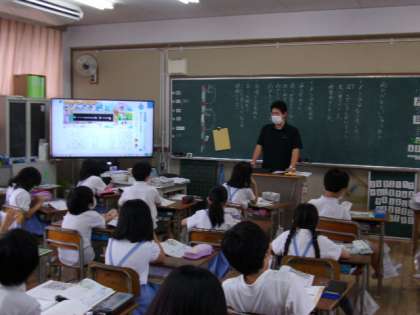 写真上 4年道徳:「雨のバスていりゅう所で」〜みんなが気持ちよく〜