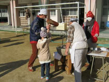 12月6日、PTAによる「おもちつき」が行われました。杵をもって元気よくもちをつき、理科室でまるめました。つきたてのおもちは、あんこやきなこをつけて、おいしくいただきました。ご準備いただいた地域やPTAのみなさん、ありがとうございました。