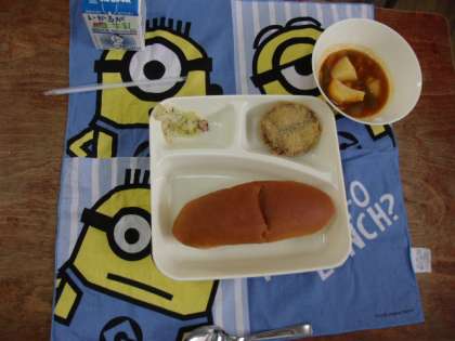 ♦チキンレバーカツ ♦ケチャップ煮♦たことキャベツのバジルソテー♦こくとうパン♦牛乳