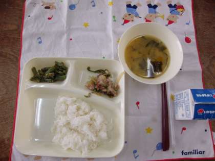 ♦豚肉のしょうが焼き♦みそ汁♦さんどまめのごまあえ♦ごはん♦牛乳