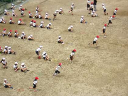 写真中 2年体育:「かけっこ」など。