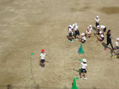 写真上 4年体育:リレーの練習、など。