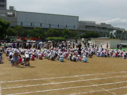 子どもたちは放送や先生方の指示をよく聞いて、落ち着いて、素早く安全な場所に避難することができました。避難開始から運動場に全員集合したことを確認するまでにかかった時間が4分1秒でした。昨年度より30秒余り早かったです。