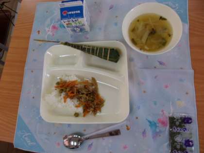 ♦きんぴらちらし♦すまし汁♦ちまき♦牛乳
