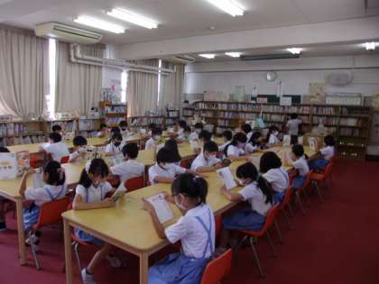 写真上 4年国語:図書館での読書活動。