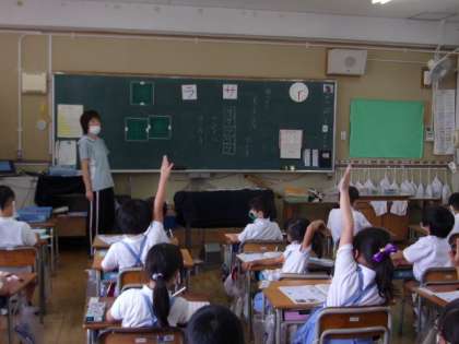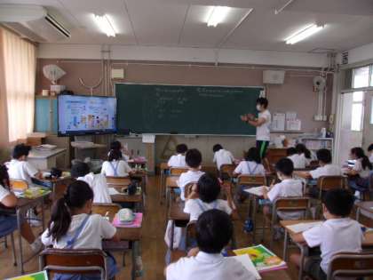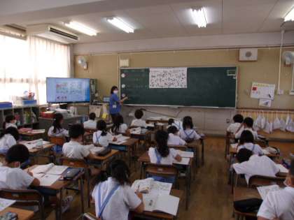 写真上 1年国語:「サラダで げんき かたかなを かこう」