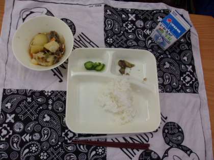 ♦肉じゃが♦焼きなすのみそだれかけ♦あっさりきゅうり♦ごはん♦牛乳