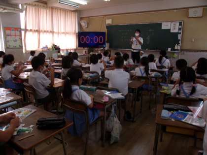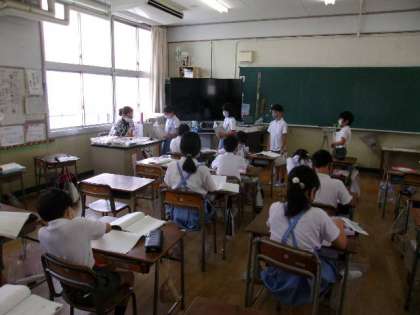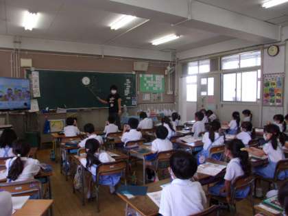 写真下 3年国語:詩の音読「夕日が せなかを おしてくる」