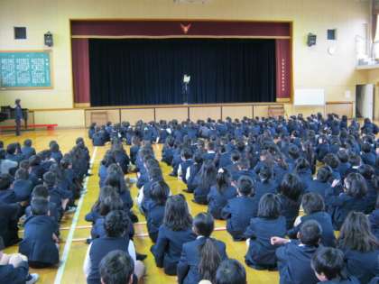 新年あけましておめどとうございます。1月7日、3学期の始業式を行いました。久しぶりに元気な顔がそろいました。児童会代表の6年生が3学期の決意を述べてくれました。