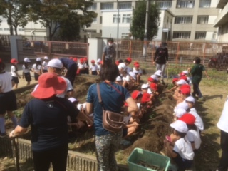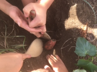 2年生が、学習園で栽培したサツマイモを収穫しました。