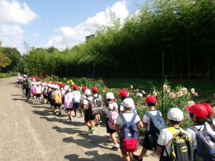 小学校に入って初めての校外学習でした。長居公園に行き、自然史博物館と植物園を見学しました。好天に恵まれ、気持ちよく公園内を歩くことができました。