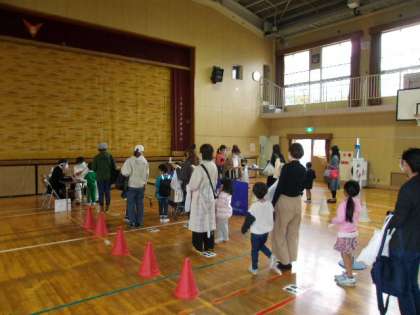 来年度小学校に入学する新1年生の健康診断です。校医先生にきていただき、一人一人診ていただきました。