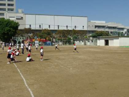 写真上 1年体育:走りなわとびリレー、など。