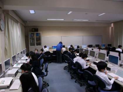 写真下 3年国語:「ローマ字」パソコン室で、〜校外学習を終えて〜というテーマで文章を入力しました。