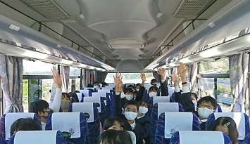 写真はバスの様子です。楽しそうに話している様子です。