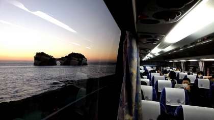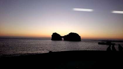 その後、午後5時過ぎ、車窓から円月島をみました。