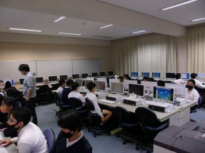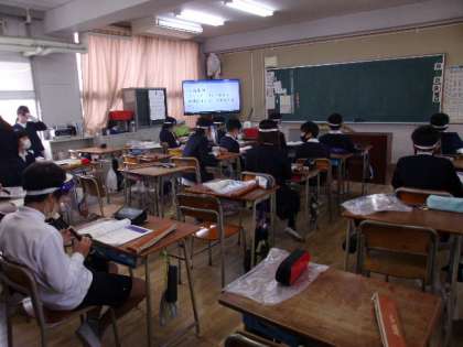 写真下 6年音楽:ボイスアンサンブルのテスト、リコーダーの練習、など。