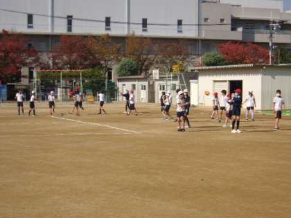 写真中 5年体育:タグラグビーの練習、など。