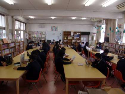 写真下 6年国語:図書館での読書活動、など。