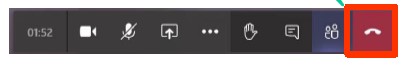 ●接続確認は、先生の顔が画面にうつって、あいさつをして音も確認できたら終了です。電話をおくアイコンを押して退出してください。