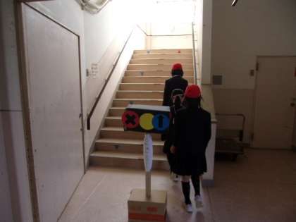今回は、右側通行を意識しやすいように、試験的に手作りの模型を二か所に設置しました。