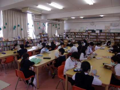 写真下 3年国語:図書館での読書活動、など。