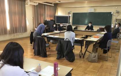 冒頭で会長より、昨日(12/3)大阪にて非常事態を示す「赤信号」が点灯されたことについて触れられ、その状況下で安全に学校運営がなされ、子どもたちが元気に登校していることへのお礼の言葉をいただきました。学校からは「運営に関する計画」中間評価をもとに、学校の現状等を報告しました。