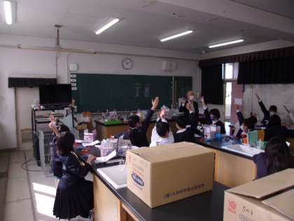 写真中 5年理科:「電流と電磁石」〜フットサル・ロボを作って〜実験をしました。