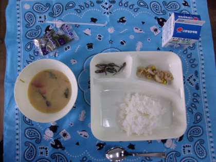 正月には新しい年のはじまりを祝い「今年も健康に過ごせますように」と願って食べる料理がたくさんあります。今日の給食には「ぞう煮」と「ごまめ」が出ました。