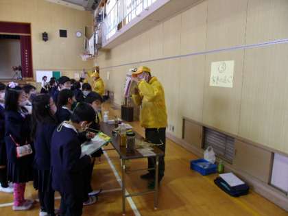 3年生が、体育館と多目的室を使って、「すみよし歴史案内人の会」の方々による出前授業を受け、「うつりかわる道具とくらし」についての学習を行いました。