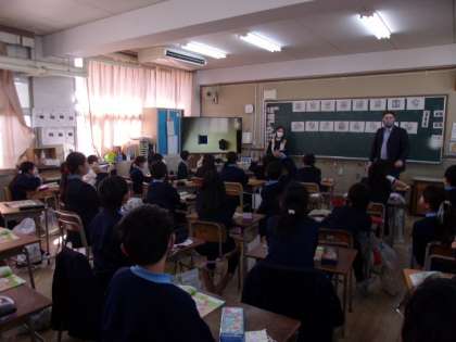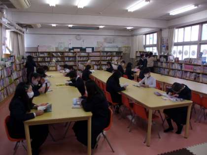 写真上 4年英語:教科書P.30〜「This is my favorite place.」entrance、library、…など。