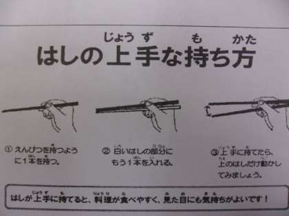 (はしが上手に持てると、料理が食べやすく、見た目にも気持ちがよいです!)