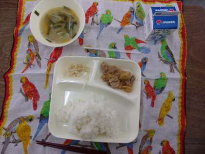 ♦豚肉のコチジャンいため♦トック♦もやしのナムル♦ごはん♦牛乳