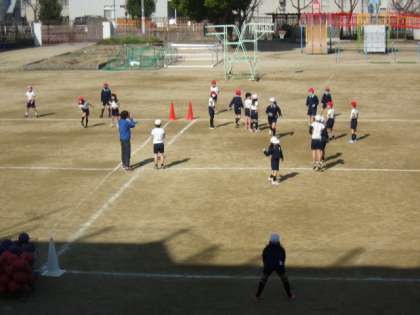 写真下 3年体育:ラインサッカー、など。