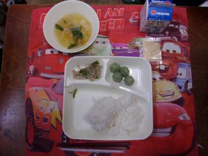 ♦豚肉と野菜のいためもの♦すまし汁♦きな粉よもぎだんご♦ごはん♦牛乳