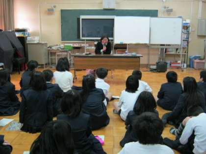 2月24日、住吉区社会福祉協議会のみなさんにお世話していただき、当事者ボランティアグループ「心(ココ)フリー」のみなさんに来ていただきました。「心フリー」のみなさんは視覚障害者のグループです。多目的室でお話をうかがったり、講堂で実習をしたりしました。実習では手をつないだり、肘をもってもらったりして踏み切り板やカラーコーンを使って「手引き」の体験をしました。