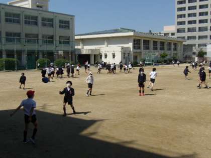 子どもたちは元気いっぱい、運動場で遊んでいました。