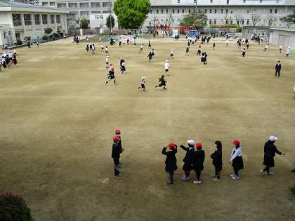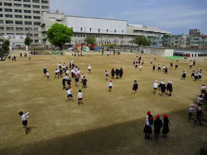 今日も子どもたちは元気いっぱい、運動場で遊んでいました。